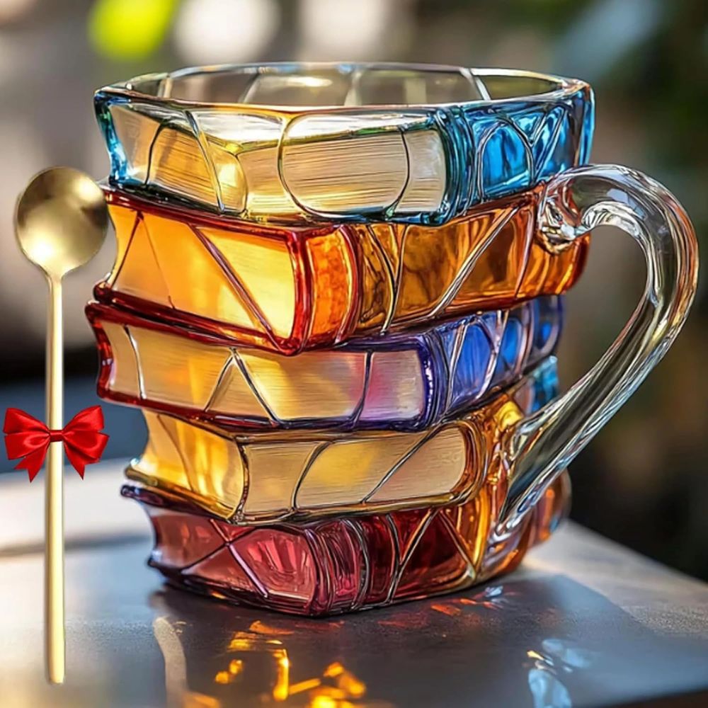 NovelSip Mug is a handcrafted glass mug with a book design that combines art and comfort. It's great for book lovers who like to sip their drinks in a cozy, meaningful way.